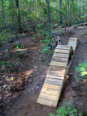 The Desert Storm Mt. Zion felt fast, it was nice to be on the trail on a week night eve. October came over the ear phones and into my head, 'october when kingdoms rise and kingdoms fall'. At the end of the roller coaster I passed black shirt and then on the main in the middle came behind yellow shirt. We rode for a bit then he down shifted and let me by. Not far up from there I came to the straight away with the log ride on the left and to my surprise there was a new stunt right there in front of me. I went right at it not slowing, I stood up as tall as I could at the approach to visually make sure there was not a huge life\I-9 ending drop on the back side and pedaled right up. At the apex of the first whoop I clipped my right pedal, for a flash of a second thought I was dead and then over down up a whoop again, down then off. Fun, Scary at the beginning and refreshingly new in a familiar spot.