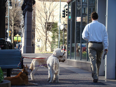 3 sporting class dogs were left on the street to beg for themselves while their owner went in for a 4 dollar cup.