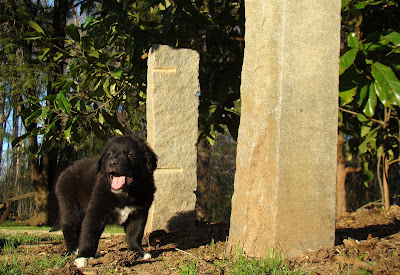 Boog showing his curiosity of fellow dog creature by giving Danger(aka Seal Blubber) a sniff.