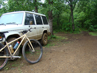 On Saturday while lost in the Toon I took a call from HQ who was kind enough to see if I had the day on Sunday for a mountain trip. Unfortunately responsibility and regret would keep me off of the early train, so instead I took the mid day one solo to the Uwharrie's Badin Lake Recreation Area. I had heard from a drunk little birdie that some old/new trails were now open to bikes in the same area as the Uwharrie ORV. I drove in off the HWY109 and took the dirt track 576 to the 597, then 597A to a ridge that may have been marked as Moccasin. I soon found a place to leave the car where a single track'ish trail crossed the ridge and the trail was not marked off limits to pedal bikes.