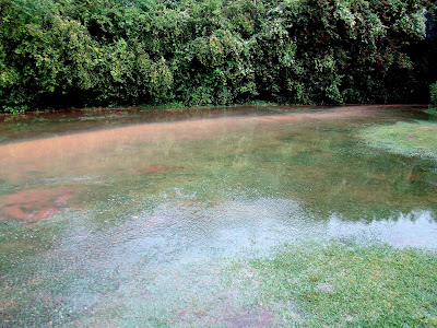 $2.20 and rising. One night last week the Charlotte area received around about 3" of rain in less than an hour and a half. This deluge came, hit the roads and buildings in the area then turned into storm water run off which is a powerful phenomenon when so much drops in such a short time span. The sheet of water that swept across our little ville came from the direction of Hwy 24/27, the higher ground a mile away. From our back yard the water continued its slight downward flow crossing one more road then onto the low spot of Loch Dooley.