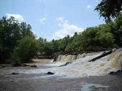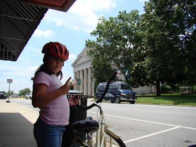 On Saturday Ms. Arcen and I loaded up the bikes and drove out to the thriving Metropolis of Lincolnton North Carolina. Our first stop was Chafin's bike shop across from the Lincoln Covnty Covrt Hovse where we said hello to an old acquaintance not forgotten, filled our bottles and got a good piece of advice with a hand drawn map for a 2.5 hour ride. We would meander out through town to the Catawba Land Conservancy Rail to Trail, ride it out and back then poke our way around the west side of town back to the square. Chafin also let us know to keep an eye out for the British(the other Empire) who may be coming to meet the Revolutionaries who were in town to celebrate the anniversary of the 1780 Battle of Ramsour's Mill. After our ride was over Ms. Arcen and I stopped in The Covrt Hovse Diner for a lunch of grilled cheese sandwich, fries, lemonade and unsweetened tea. Another ole friend Rondal came by and after we ate he took us to the Battle Ground site in his sporty little civic auto viper. During our travels we noticed plenty of evidence that our present American Empire has followed the model of the previous two, Rome and Great Britain.
