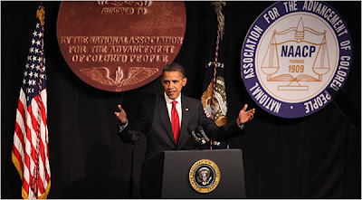 NAACP. Mr. Obama obviously chose the Centennial Celebration of such a fine entity that was born to support the advancement of African Americans long before they had the Right to Vote over the party that was being held at the WMD Camp in Cheyenne Wyoming. Happy Birthday NAACP-Keep the party going!!