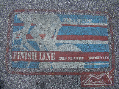 Over on the Paris Mountain Park entrance road toward the top of the hill we rolled by this marker in the road. Hincapie: 3min 3sec, 1km up hill.