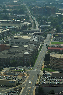 Awesome, notice the brand new NASCAR HALL OF FAME and directly behind it the tall mirrored window NASCAR Tower attached. Well on Friday while I was making this picture the bank was announcing that the NASCAR Tower was about to be Foreclosed upon. Amazing, the chincy building radiating even more heat has not even been open a year. Fine progress indeed gentlemen, well done.
