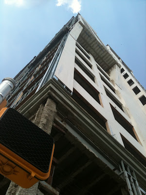 The last piece of the puzzle may come from a homeless fellow named Marques who lives on the top floor of this foreclosed and abandoned high rise that sits on the inside corner at 3rd and Caldwell. When he saw me hanging out taking pictures on the scene, Marques came down out of the building and asked me for some money and inquired as to what I was doing under his de facto home. I explained how I was working on an investigation of an accident involving a bike and a car that happened a week and a half ago. Marques looked shocked, smiled and said, "I witnessed everything that afternoon but I was too afraid to come down when I saw all of the cops and firemen. Give me a dollar and I will tell you what I saw." So, I gave him my last dollar and was blown away with the interesting details he recalled.