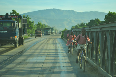 Within a hundred meters down the road I looked up and saw two children in public school uniforms riding their bikes directly towards us on what most westerners would consider the wrong side of the road. The children were on their daily inbound Stay Alive to school from a small enclave at the end of the road just out of sight behind them under the mountain in the picture below. Pastor Lyonel slowed the truck a bit realizing that the kids were going to be on the bridge at the same time we were. I was first scared for these two young ones until as we passed, I caught their eyes. Focused, crystal clear and alive not afraid of what could kill them but embracing it as their living moments. CONGRATULATIONS LITTLE ONES! Your gorilla bike commute tactics and true survival skills did not go unnoticed nor will they be easily forgotten. Keep your heads up and always remember that you have the power to see the Demons coming before they do which will give you time to project a different outcome that keeps you safe. You are stronger and more alive than most of the culture that I am surrounded by every day. As that smart fellow once said, "What is real can never be taken away."