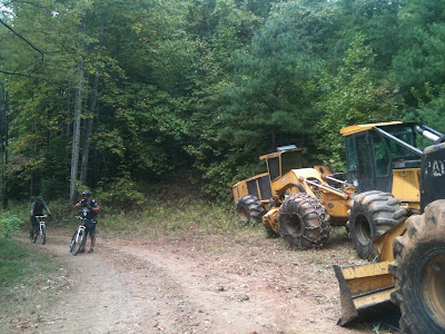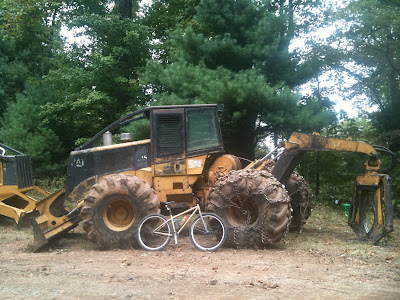 On the traverse across the meandering grassy double track ridge just as I was wondering about why the word Treespect came to me the night before, there it was plainly in front of me getting larger as I continued pedaling straight for it. The large pieces of equipment sat quietly next to the even quieter piles of long straight hard wood on the left hand side of the path. Behind and above the winners and losers, the sloping hillside was evidence of modern thought. I realized that logging in the now at this spot could not be profitable by the board foot. However, after more thought I also realized that with these huge diesel burners and all the smaller ones that transport the operators in and out of here as well as any other vehicles associated with the business end of crushing the trees down that there must be a subsidy. And there is, it is large. The more your company, I mean country burns in fuel the more the Fed repays you for that waste which is the only way that this big patch of the Lorax's woods in front of me could possibly be in the condition it now is. Foolish, like a repetitive loop of unoriginal thought, but it is not mine.