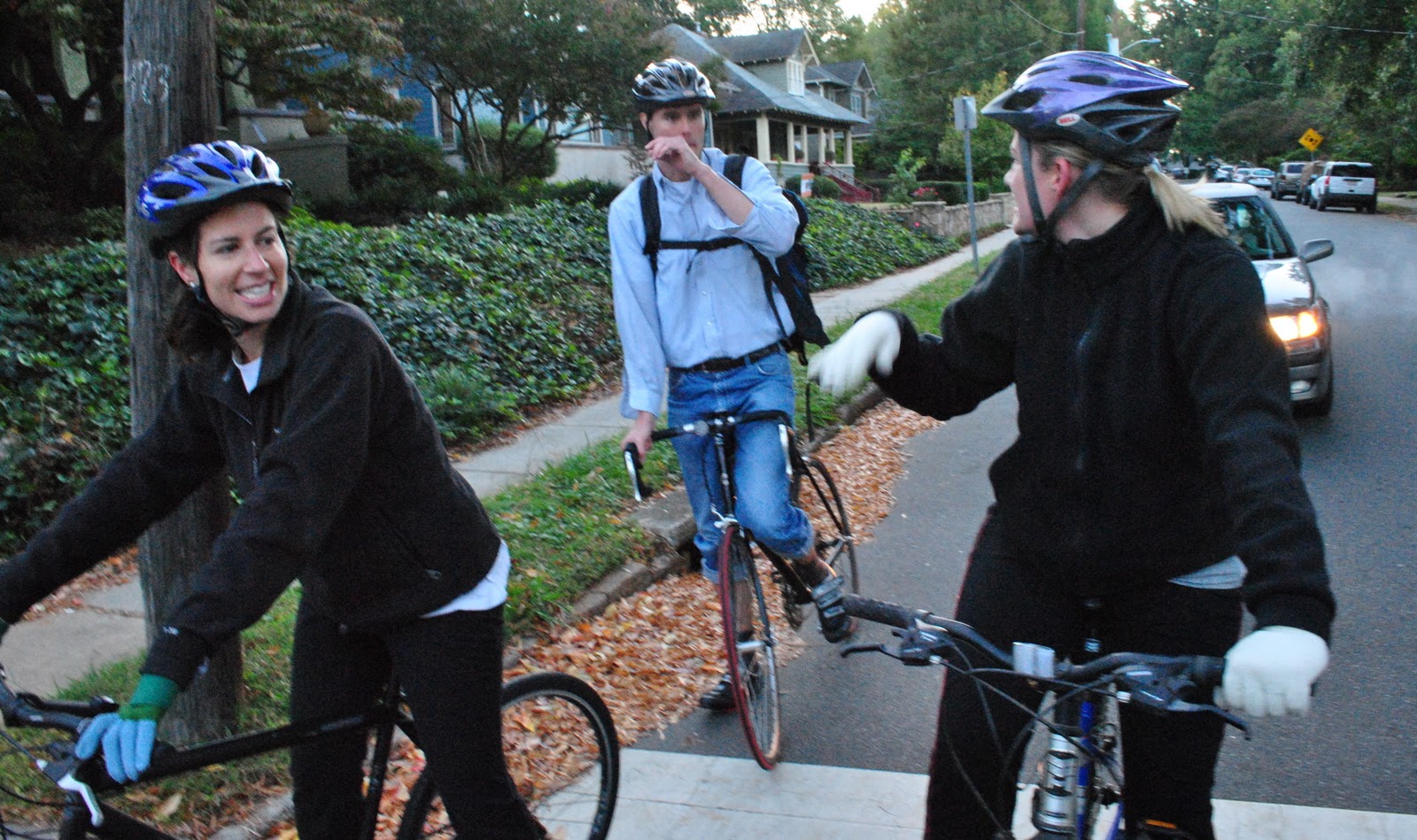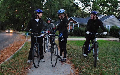 So, I rode out of the estate in total darkness and arrived at the rally point a few minutes early to meet these brave souls willing to dive in with the auto traffic racing towards The Jar from the immediate east corridor. From left to right please meet Gwen, Pam, Jenny and Elizabeth.