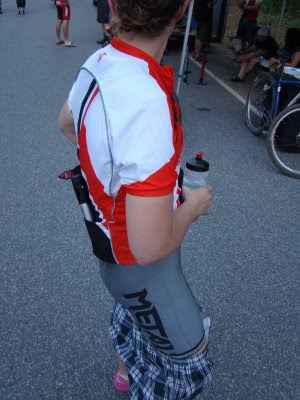 The final approach up to Oz on 7th Street. Pam fools around no longer and takes off on the second attack of the ride putting us all to task stringing out the group as if she were hanging us on a wire. With authority Pam hammered on the pedals which put all of us into a spot of bother. Not used to such a pace I hung off the back with Jenny and we gave each other the moral support we needed to straggle in and finish the stage. At the awards ceremony I claimed the highly coveted, Lanterne Rouge.