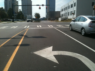 For all of you cycling peeps out there, check out all of the blocks in page two of the report. There is plenty to learn when you read all of the data carefully, especially if you have the encryption decoder for all of the official lingo. But seriously, check it out. This page clearly states that the schematic is not to scale, however it does not mention that the North arrow appears to be pointing in an easterly direction. Upon further investigation at the scene of the event, my undercover CSI partner noticed that the drawing shows the car in the left of two lanes on Caldwell when there are actually three. According to this picture the car was in the left turn only lane. Perhaps this report should go back for correction like the first one did and be replaced with a third version.