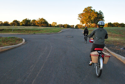 A few days ago former CMA Commuter of the Month and very fast rolling Townie inside leg dismount capable Pam Murray invited me to join her and three of her colleagues for a Friday morning ride from the Plaza Midwood area to the new Bank of America Building labeled, 1BAC. A section of the 1BAC has been built in design to encourage Bank employees to commute to work by bike. There is a proxy card access secured cage and racks for plenty of bicycles in an easy to get to from the street corner of the garage and just a few feet from the cage there are both men and women locker room facilities with showers and gear storage. Perfect, a ride with three Corporate chicks just after sunrise on a chilly Friday morning.