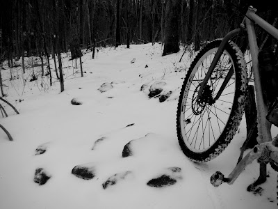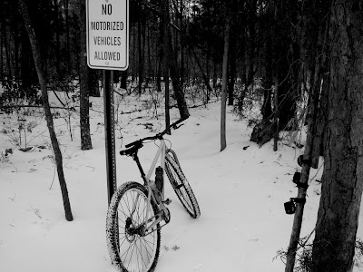 The ride was a basic ride that I have done before but when I woke and saw all of that beautiful radiant white I knew that this one would be different and worth the time effort required. Out of the house alone overland for 6.2 miles to Sherman B-Ranch, ride those 11 snow covered forested trail miles and then turn the 6.2 miles back to Dooleyville. My previous fair weather times have all come in well under the three hour singley mark. I took off early enough with a three and a half hour window but was sadly mistaken to believe that the mission would be accomplished in that time frame.