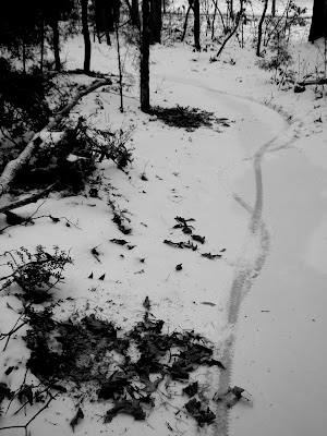 Crossing paths with the tracks of a deer, both of us traveling without companions other than ourselves.